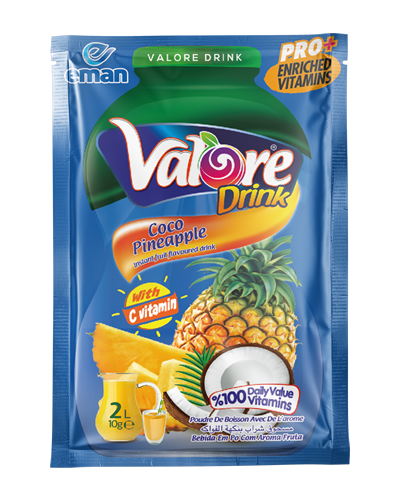 Valore Drink brand is a popular powder drink in many countries with its high quality formula and resfreshing 20 flavors. 10 grams sachets which yield 2 Liters makes Valore Drink an affordable juice alternative. Offering more than 20 tasty flavors Valore is the choice of millions of people around the World.  There are 624 sachets in each carton box.